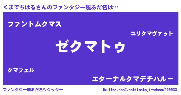 | ポケモン風あだ名 | 『クマセウス』『ヒクマデチハル』 |