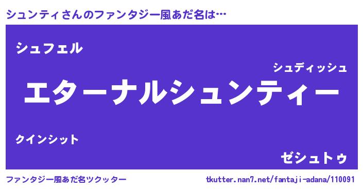 | 男性向けラノベタイトル風あだ名 | 『うちの娘の為ならば、俺はもしかしたらシュンティも倒せるかもしれない。』 |