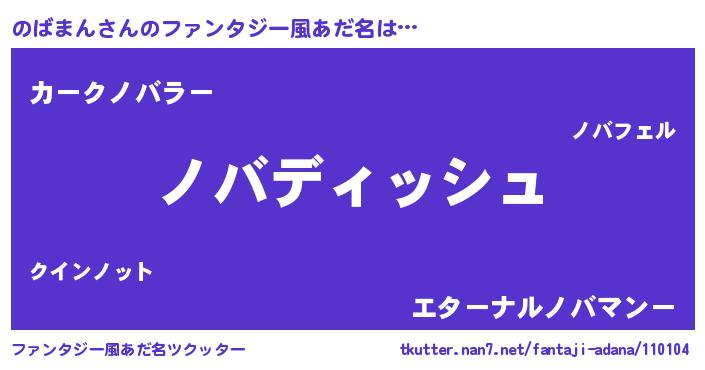 | 男性向けラノベタイトル風あだ名 | 『のばまんという概念が存在しない退屈な世界 』 |