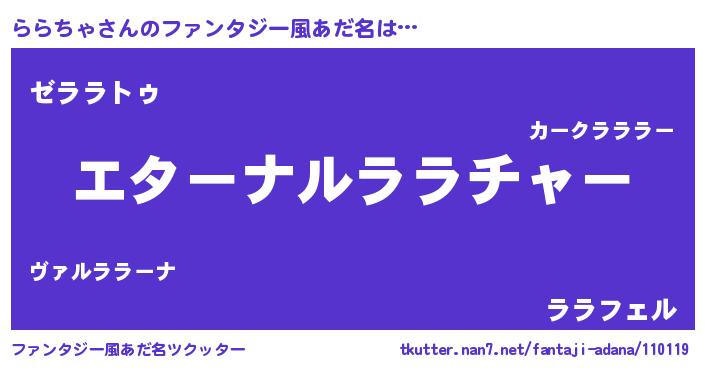 | 意味不明あだ名 | 『ららちゃフォーエバー』『自称ららちゃ』 |