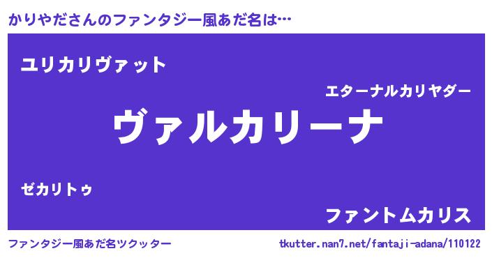 | 男性向けラノベタイトル風あだ名 | 『この素晴らしい世界にかりやだを!』 |