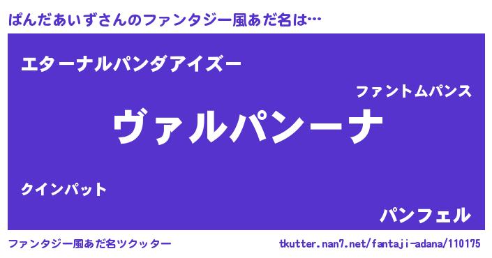 | ポケモン風あだ名 | 『パーンイ』『パンダダネ』 |