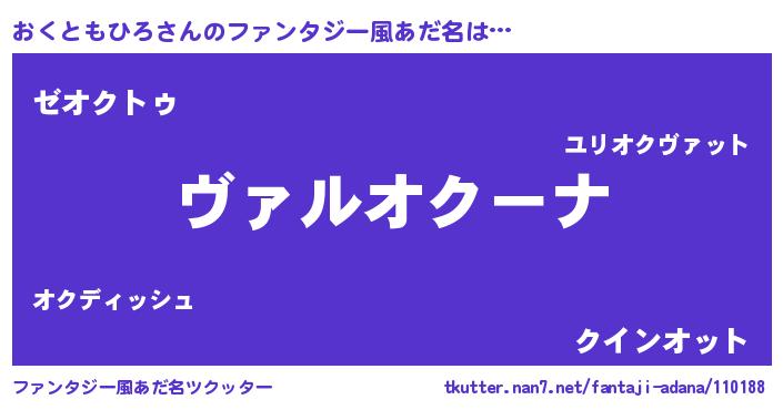 | 男性向けラノベタイトル風あだ名 | 『この素晴らしい世界におくともひろを!』 |
