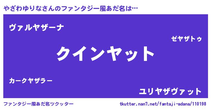 | 男性向けラノベタイトル風あだ名 | 『おまえをオタクにしてやるから、俺をやざわゆりなにしてくれ! 』 |