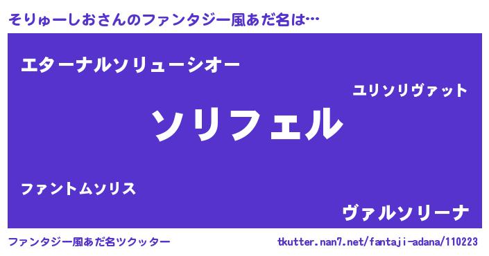 | 胡散臭い通販商品みたいなあだ名 | 『億万長者になれる水晶球…その名も「そりゅーしお」』 |