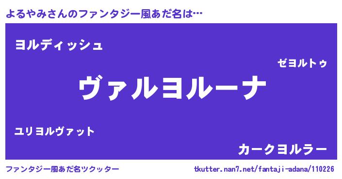 | ヘコむあだ名 | 『よるやみ(笑)』『よるを』 |