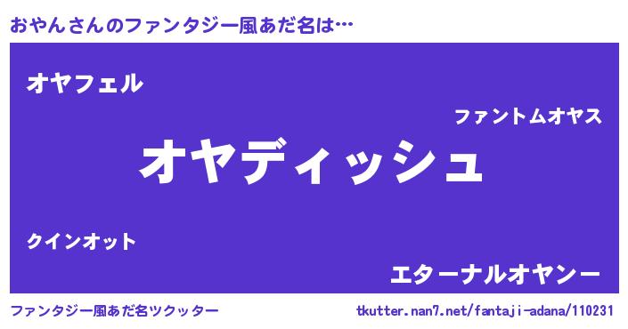 | ヘコむあだ名 | 『おやん(苦笑)』『おやふぇ~』 |