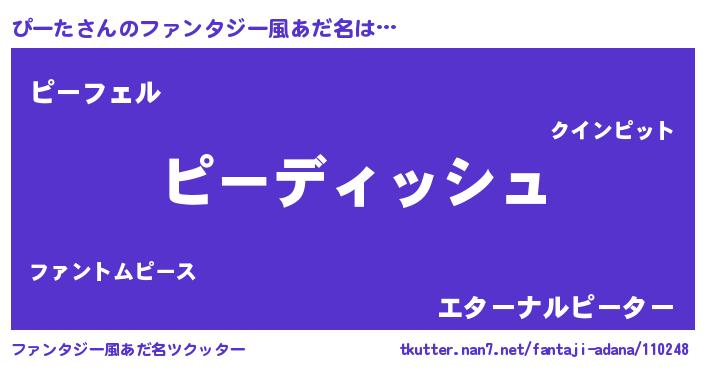 | 男性向けラノベタイトル風あだ名 | 『ぴーたという概念が存在しない退屈な世界 』 |