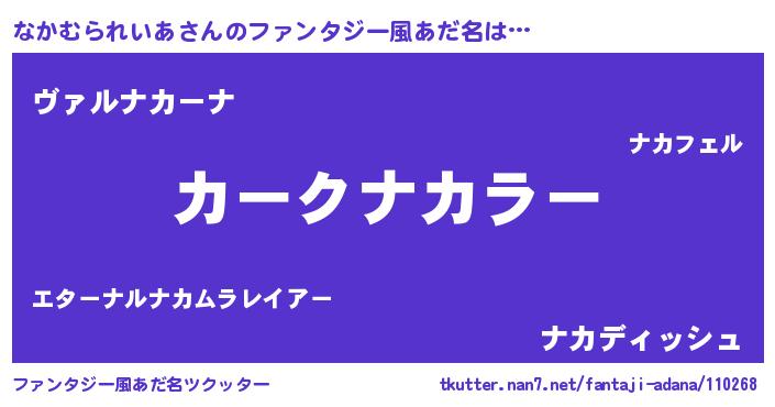 | ヘコむあだ名 | 『なかむられいあ(爆)』『なかっふぃ~』 |