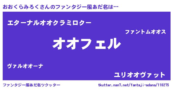 | 男性向けラノベタイトル風あだ名 | 『おおくらみろくの憂鬱』 |