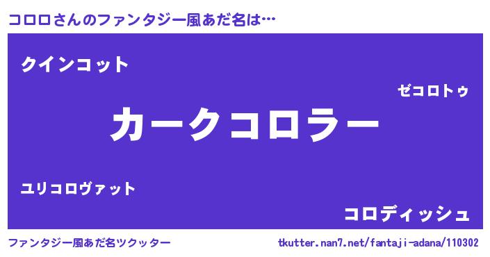 | ヘコむあだ名 | 『コロロ(爆)』『コロっふぃ~』 |