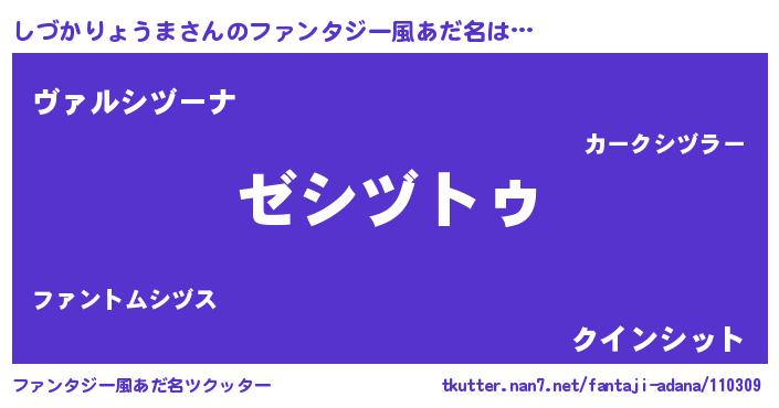 | 意味不明あだ名 | 『自称しづかりょうま』 |