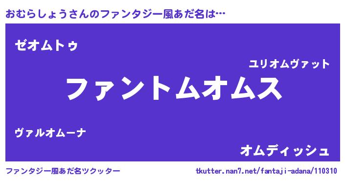 | 意味不明あだ名 | 『とにかく怪しいおむらしょう』 |