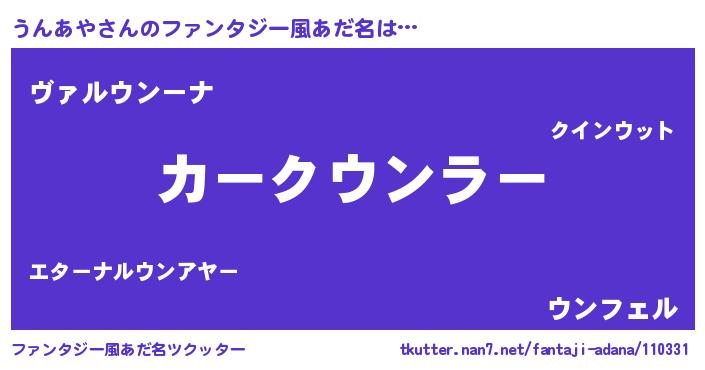 | 意味不明あだ名 | 『住所不定無職うんあや(2歳)』 |