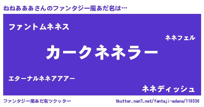 | ヒーロー風カッコイイあだ名 | 『幻影騎士ネネ』『ネオネネアアア』 |