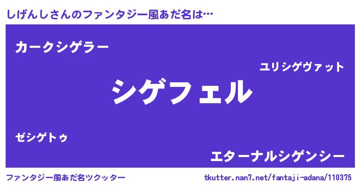 | ヒーロー風カッコイイあだ名 | 『スーパーシゲンシ』『愛の使者しげんし』 |