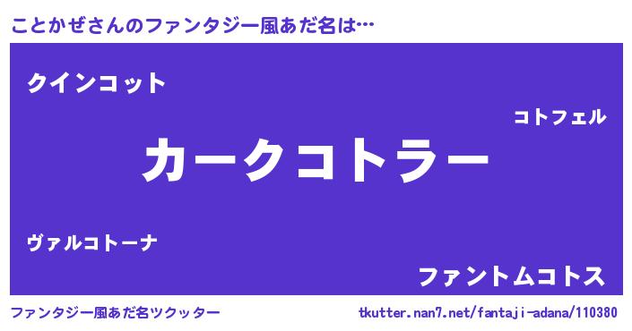 | ヒーロー風カッコイイあだ名 | 『天空の使者ことかぜ』『魔戒騎士コト』 |