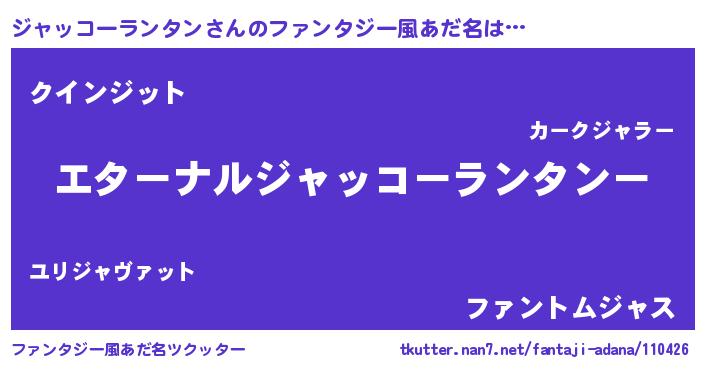 | 欧米人風あだ名 | 『ジャッコーランタンクリステル』 |