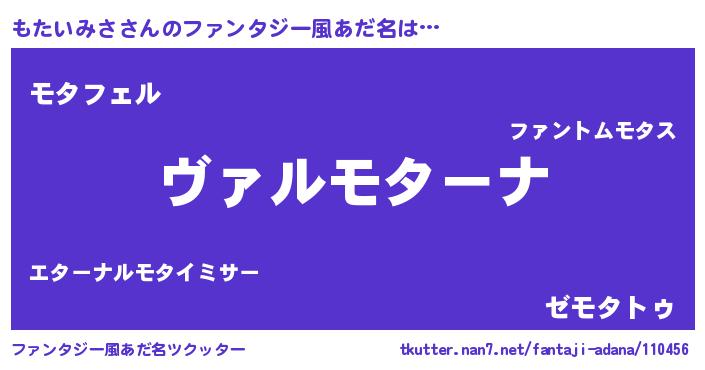 | 男性向けラノベタイトル風あだ名 | 『魔弾の王ともたいみさ』 |