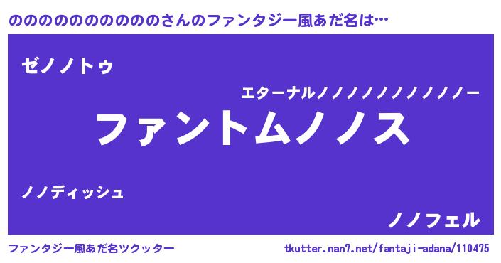 | 女子向けラノベタイトル風あだ名 | 『ののののののののののの卵を拾いまして』 |