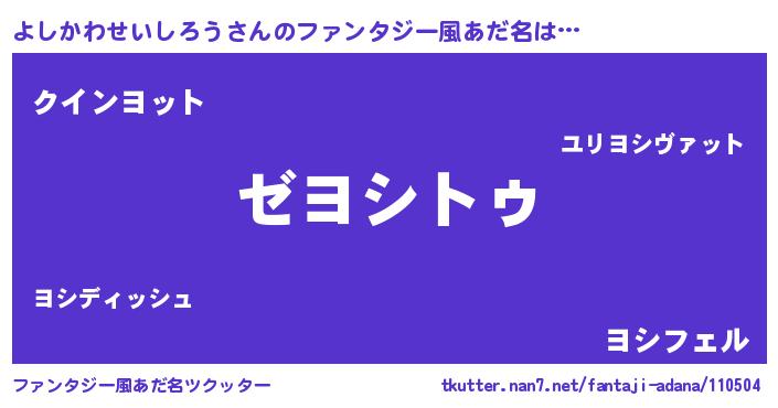 | 肩書あだ名 | 『よしかわせいしろう総統』 |