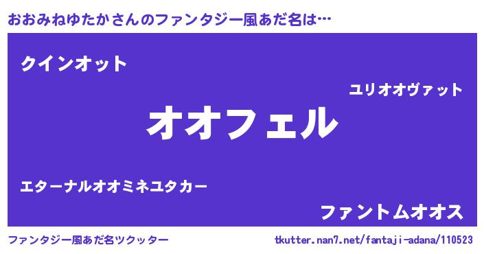 | 男性向けラノベタイトル風あだ名 | 『オオミネユタカアートオンライン』 |