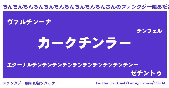 | 男性向けラノベタイトル風あだ名 | 『緋弾のチンチンチンチンチンチンチンチンチンチン』 |