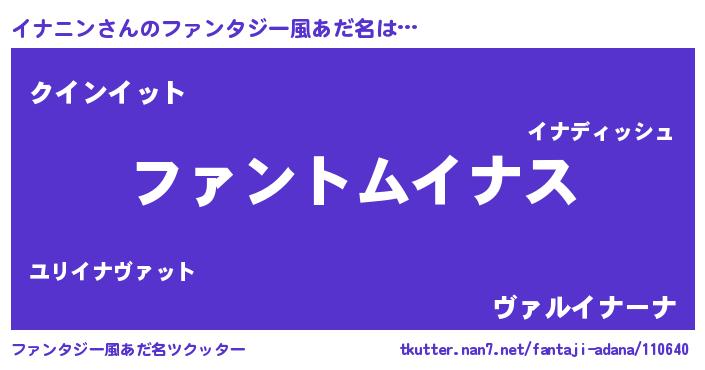 | 男性向けラノベタイトル風あだ名 | 『ダンジョンにイナニンを求めるのは間違っているだろうか』 |