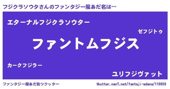 | 胡散臭い通販商品みたいなあだ名 | 『信頼と実績のサプリメント…その名も「フジクラソウタ」』 |