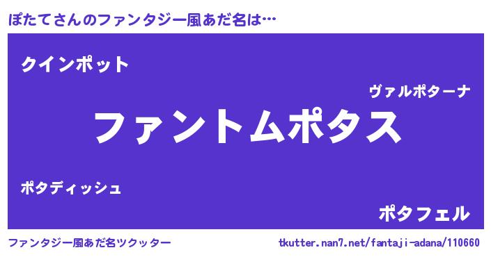 | ヒーロー風カッコイイあだ名 | 『暗黒騎士ポタ』『正義の使者ぽたて』 |