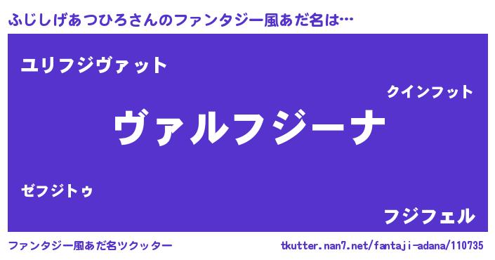 | 男性向けラノベタイトル風あだ名 | 『魔弾の王とふじしげあつひろ』 |
