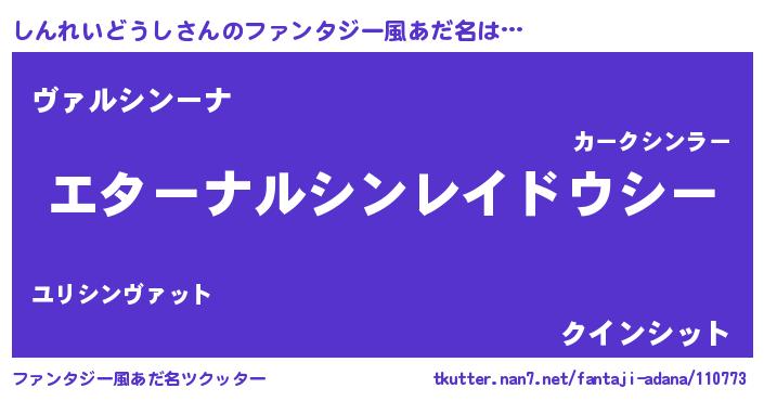 | 意味不明あだ名 | 『しんれいどうしフォーエバー』 |