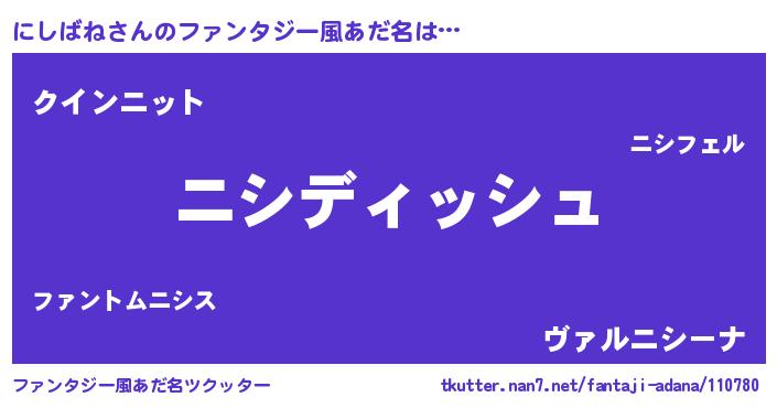 | 男性向けラノベタイトル風あだ名 | 『にしばねという概念が存在しない退屈な世界 』 |