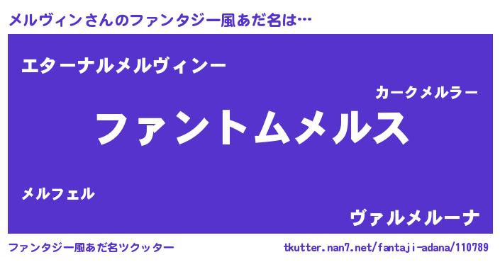| ポケモン風あだ名 | 『ヒメルヴィン』『メルヴダネ』 |