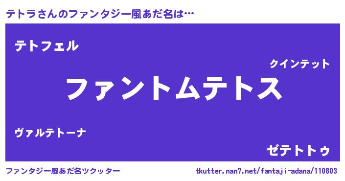 | 意味不明あだ名 | 『とにかく怪しいテトラ』『自称テトラ』 |