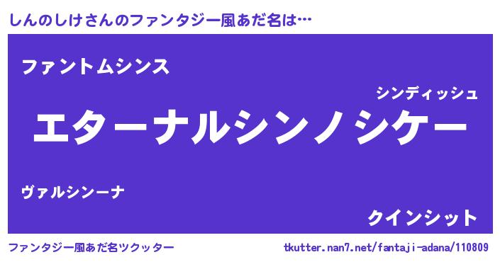 | 意味不明あだ名 | 『しんのしけフォーエバー』 |