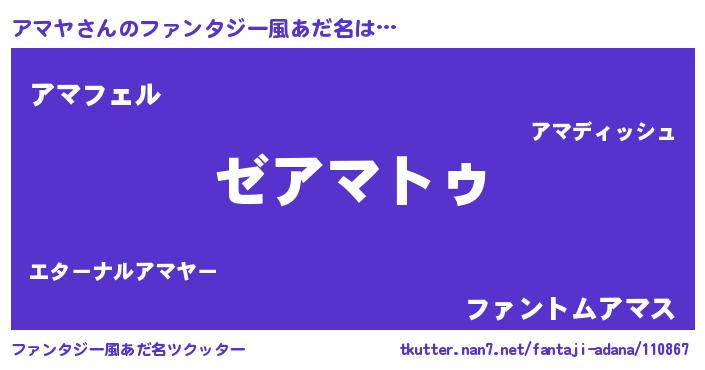 | 男性向けラノベタイトル風あだ名 | 『Re:アマヤから始める異世界生活』 |