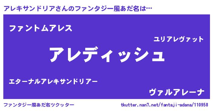 | 意味不明あだ名 | 『永久保存アレキサンドリア』 |