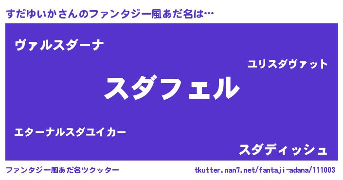 | 男性向けラノベタイトル風あだ名 | 『すだゆいかに滅ぼされるだけの簡単なお仕事です』 |