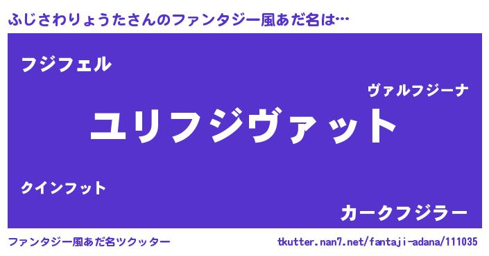 | 男性向けラノベタイトル風あだ名 | 『ふじさわりょうた~年齢イコール彼女いない歴の魔法使い~』 |