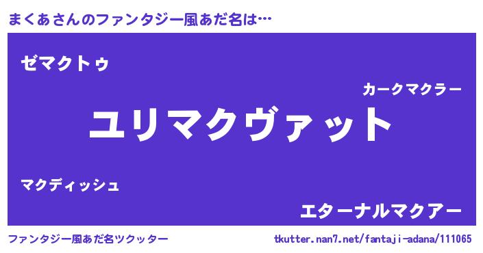 | 男性向けラノベタイトル風あだ名 | 『まくあ~年齢イコール彼女いない歴の魔法使い~』 |