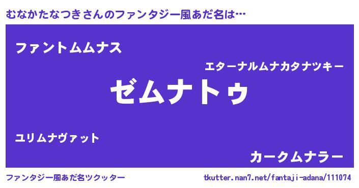 | 男性向けラノベタイトル風あだ名 | 『Re:むなかたなつきから始める異世界生活』 |