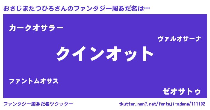 | 男性向けラノベタイトル風あだ名 | 『おまえをオタクにしてやるから、俺をおさじまたつひろにしてくれ! 』 |