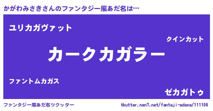 | 欧米人風あだ名 | 『アンジェラ・かがわみさき』 |