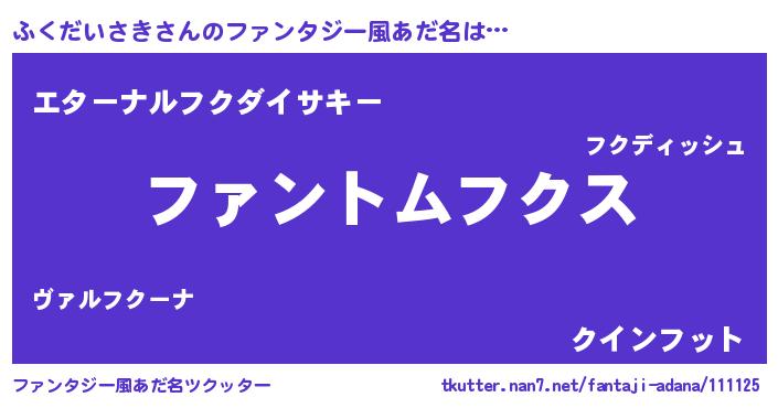 | ポケモン風あだ名 | 『ヒフクダイサキ』『フクダダネ』 |