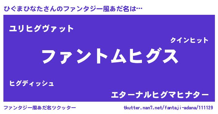 ひぐまひなたさんのファンタジー風あだ名をツクッター!