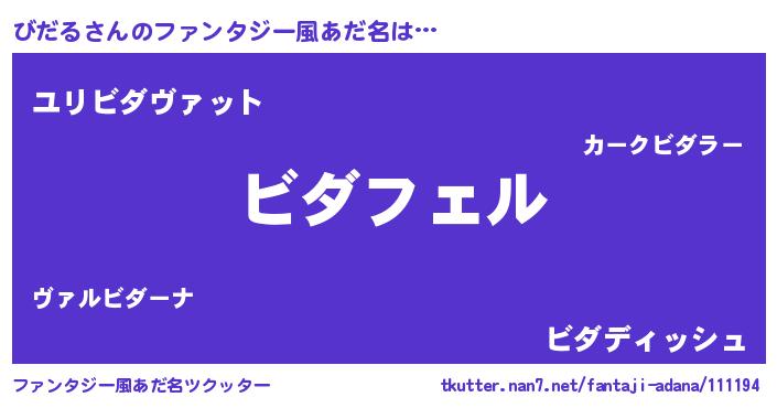 | ヘコむあだ名 | 『びだにゅー』『びだる(震え声)』 |