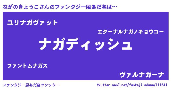 | 意味不明あだ名 | 『永久保存ながのきょうこ』 |