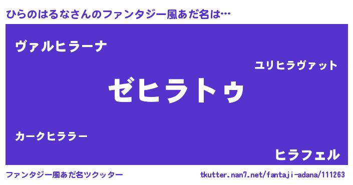 | 意味不明あだ名 | 『自称ひらのはるな』 |