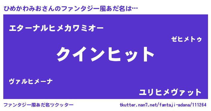 | 男性向けラノベタイトル風あだ名 | 『おまえをオタクにしてやるから、俺をひめかわみおにしてくれ! 』 |
